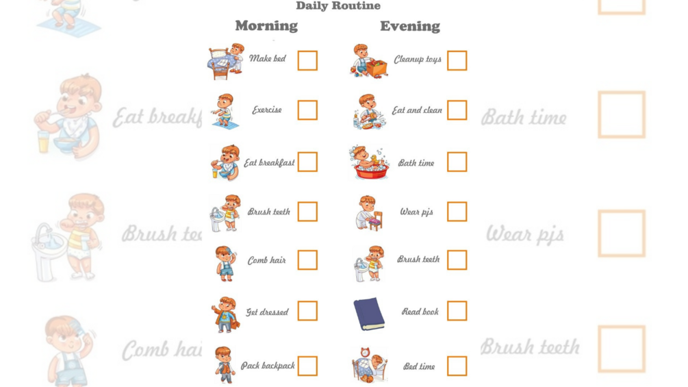 Daily Routines Tracking Chart, Printable Daily Program for Kids